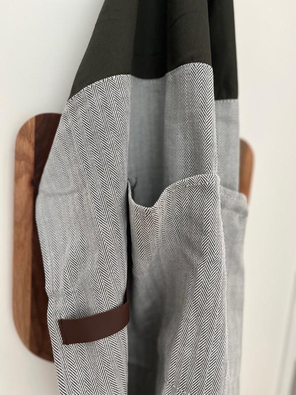 Very stylish unisex apron. It's one size fits most. Seems pretty durable although not super thick or heavy. Fabric is soft. I would recommend this apron.