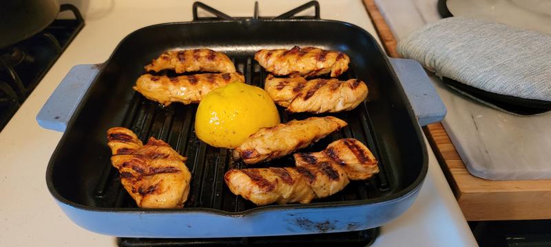 This pan has all the features I was hoping for. It’s the perfect size whether I want to cook one egg or a pound of bacon! It’s awesome for grilling chicken on the stove top and finishing things up in the oven. I love the square design and non stock surface. Every kitchen needs tbis addition!