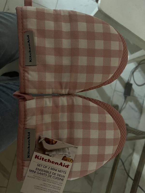 I am in love with these KitchenAid Gingham Mini Oven Mitt 2 pack. They are the perfect size for anyone with small or big hands (like me!). They are very well made and feel super reliable. I had absolutely no problems using them and they protected my hands from the oven heat very well. I didn't have any problems with them slipping or falling off at all. I would definitely recommend these for anyone looking for new oven mitts to add to their collection!
