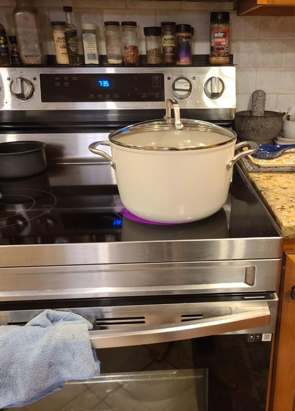 Beautiful yet durable non stick pans. Won’t scratch or peel. Handles are cool to touch when cooking. Washing is very easy. I never have to use a steel wool pad or soak a pan again.