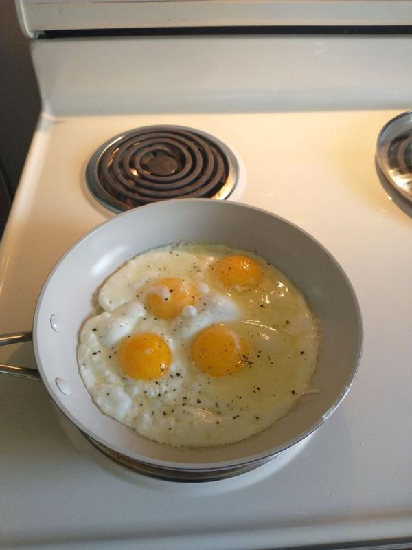 Couldn’t really add a photo of the pan, because I just used it lol. It’s kinda dirty lol. The pan works great, I haven’t had any issues with food sticking to the pan. I love that for me as an over easy egg lover.