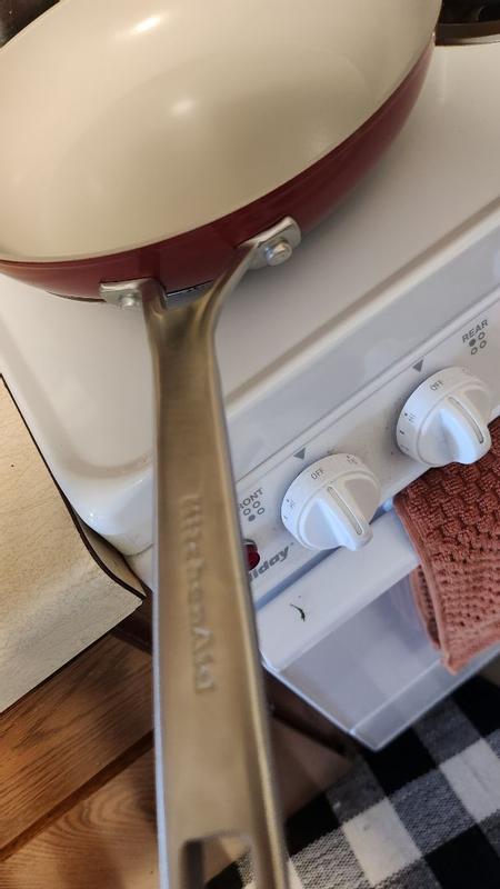 I really enjoy using this pan! My only complaint is that it stains quickly and I didn’t realize it would. It’s a good size for making eggs for myself. I found that it held up with the nonstick and seemed to cook evenly.
