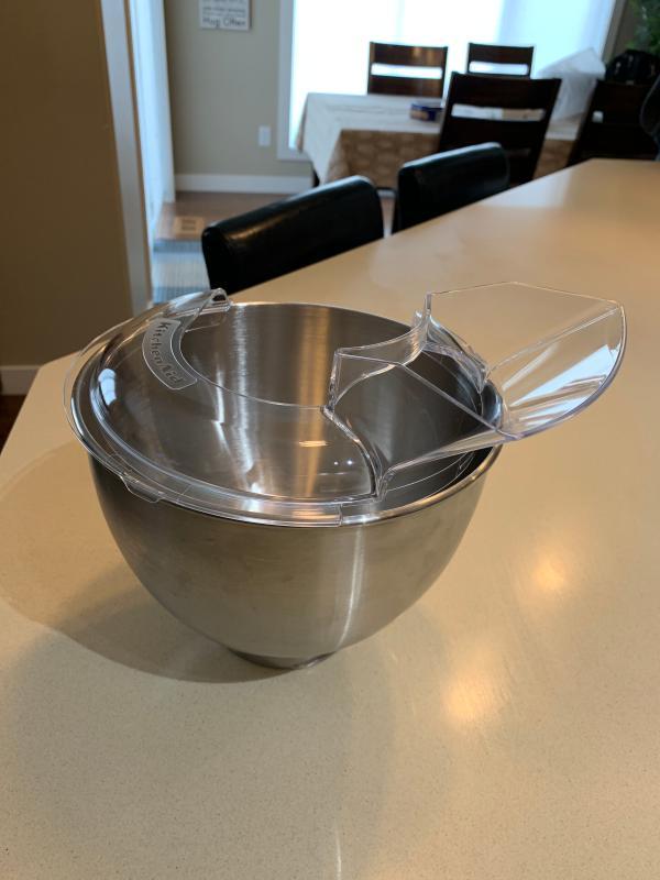 I have found it needs a bit of redesign as well. The cover does not fit easily or securely on bowl. I have the scale and sieve attachment, this is very awkward to use as the cover pouring funnel is in the wrong place to be able to fit the shield as intended under the mixer head. I have to place it sideways so that the sieve chute can fit in the poring shield funnel. This means this means the shield gap is to the side of the bowl , not under the machine head. This is one of the times I most need the cover, sieving dry ingredients slowly into a mix. The cover does not fit onto the bread bowl, I expected it to be interchangeable and fit on both. I do like how easy it is to pour wet ingredients into the mix through the funnel. Just a shame I have to hold cover in place with my other hand