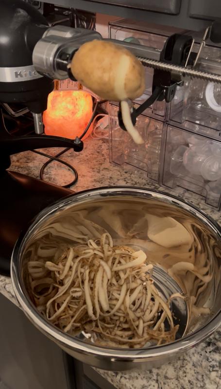 Dear ME, Thank you for your review. We are sorry to learn of the concern you expressed regarding your KitchenAid Spiralizer Attachment. We would like to inquire further about your review with you. Please respond to this email address kitchenaid_receipts_usa@kitchenaid.com, with your name, user ID#357047101 used for the review, phone number, street address, zip code, model & serial number on the appliance, and date of purchase. We look forward to your reply. Thank you. Review Team