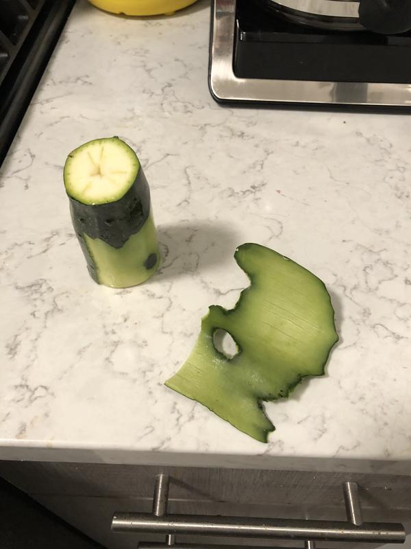 I bought this attachment a couple of months ago and it is great for making vegetable sheet lasagna. Use larger Veggies as it leaves behind a 20mm core