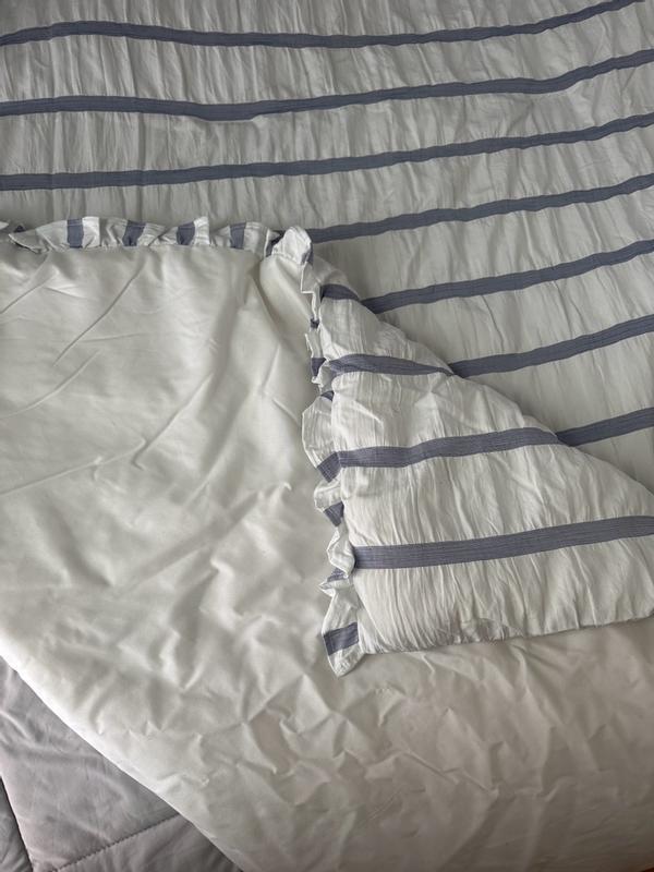 This comforter set is honestly so cute! I love the pattern and design; it’s simple and yet adds just enough character to maintain a peaceful bedroom. I also love the ruffle design at the edges! The comforter itself is soft and cool. I find it perfect as the weather is getting cooler. There’s something about coming home to a beautiful comforter set after a long day, and this gives just that.