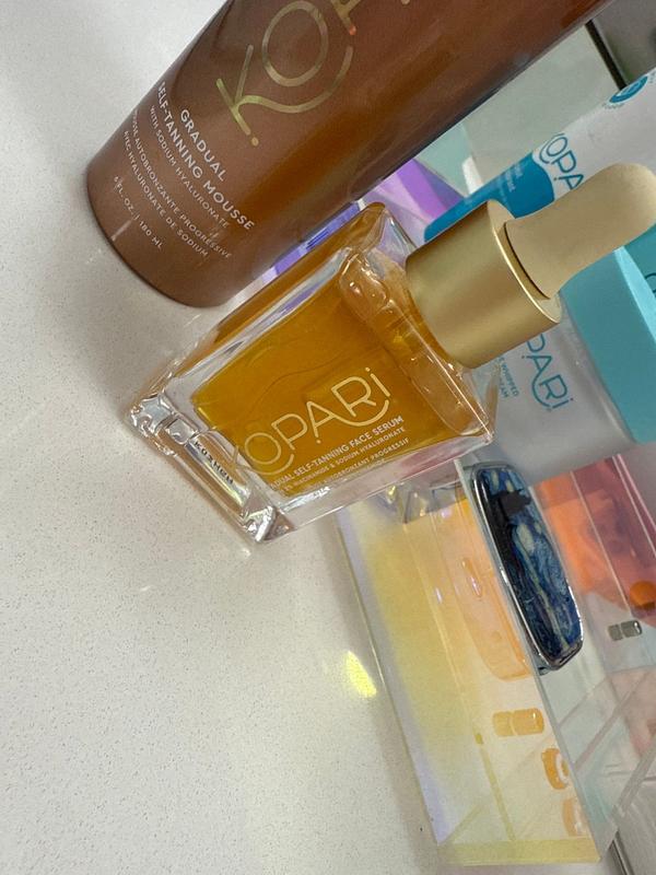Get that endless vacation glow with Kopari's Gradual Self-Tanning Face Serum. These drops provide a sun-kissed bronze that can be tailored just for you. Infused with hydrating hyaluronic acid and soothing niacinamide, this serum helps ensure a radiant tan every time.