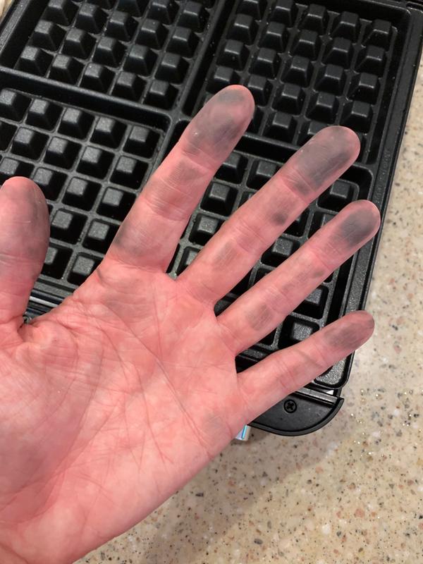 I should have taken photo uniform browning, perfect Belgium Waffle. Crispy, brown, the way I like them. Substituted Applesauce for oil 1:1 and still no sticking. No oil spray either.