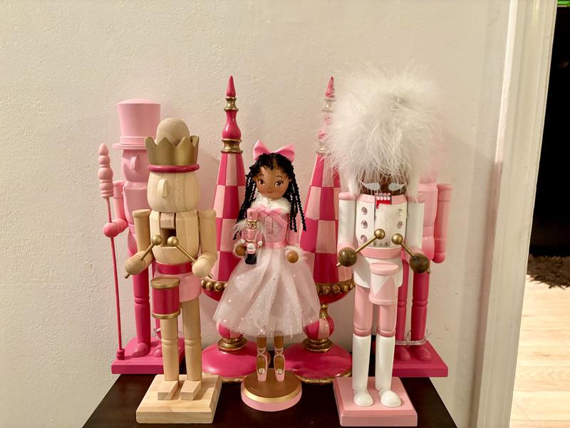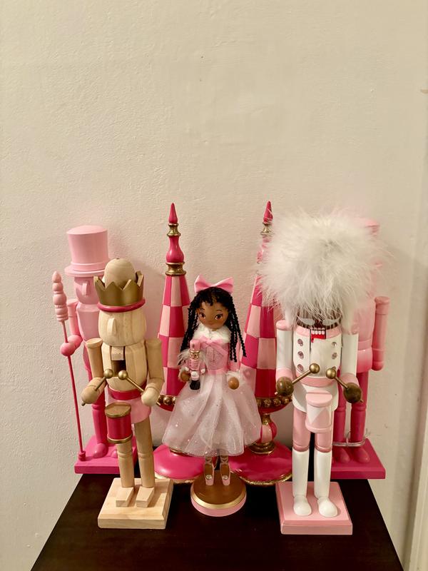 I love this Clara nutcracker! I love that she is African American! So cute , the details are adorable like holding the little nutcracker . Well made. She’s going to look cute in my Christmas nutcracker vignette!