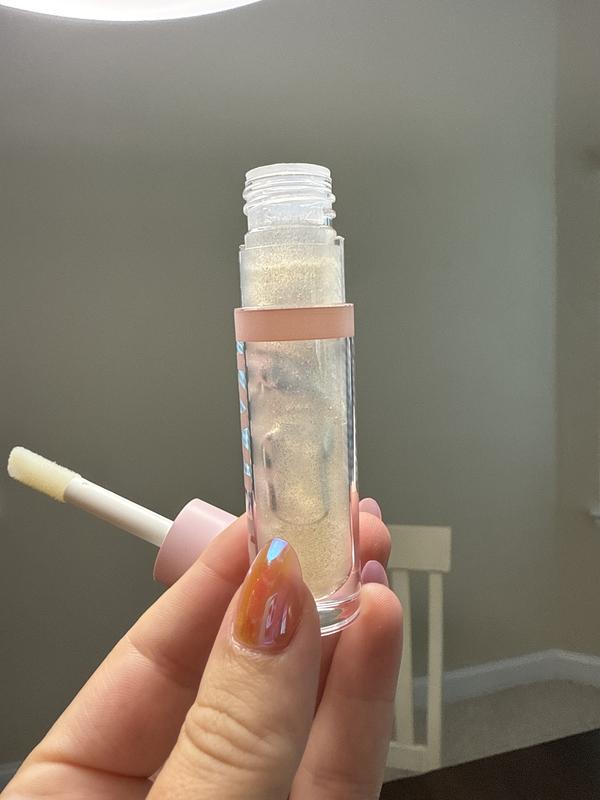 Kylie Cosmetics Glitz Lip Gloss is a sheer nude-pink gloss with fine gold shimmer that delivers a juicy, glowing lip effect without looking glittery or overwhelming. It is praised for its smooth, non-sticky formula and comfortable wear, making lips look fuller and more radiant with a mirror-like shine. Provides an effortless glossy look with just enough shimmer to stand out without being glittery. Comfortable, lightweight formula suitable for all-day wear. Adds a natural fullness and smoothness to lips for a juicy, plump appearance.Versatile for layering over different lip colors or wearing alone for a subtle radiant shine. Vegan and cruelty-free formula aligned with Kylie Cosmetics' clean beauty goals. Overall, Glitz Lip Gloss is an excellent choice for anyone seeking a comfortable, shiny lip gloss with a subtle sparkle that enhances natural lip beauty with a soft nude-pink glow.