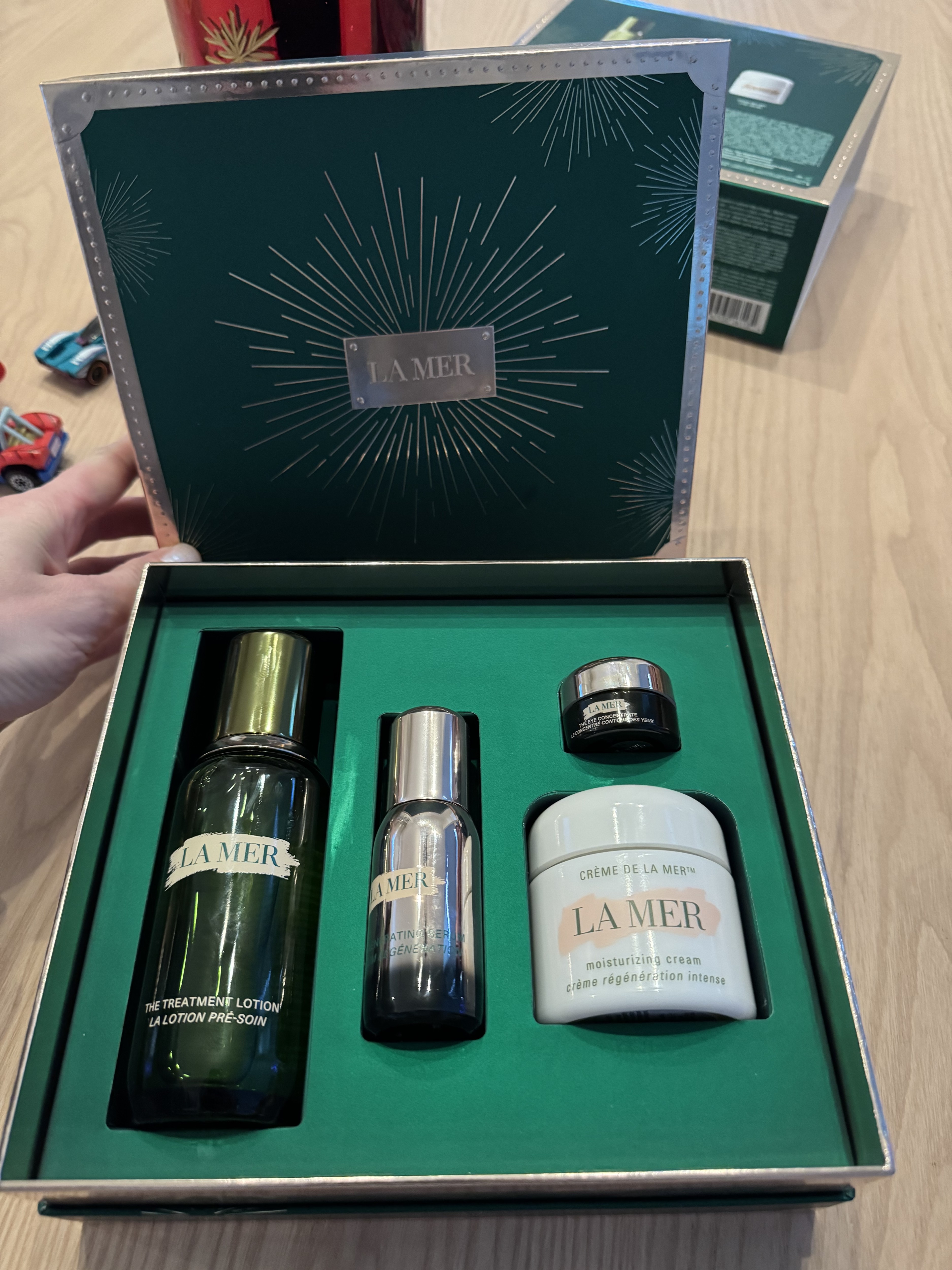 My husband surprised me with this gift on Christmas and I am blown away. I've been using these 4 products day and night for a week and have been getting compliments on my complexion already. These products look & FEEL luxurious. Love my new La Mer!