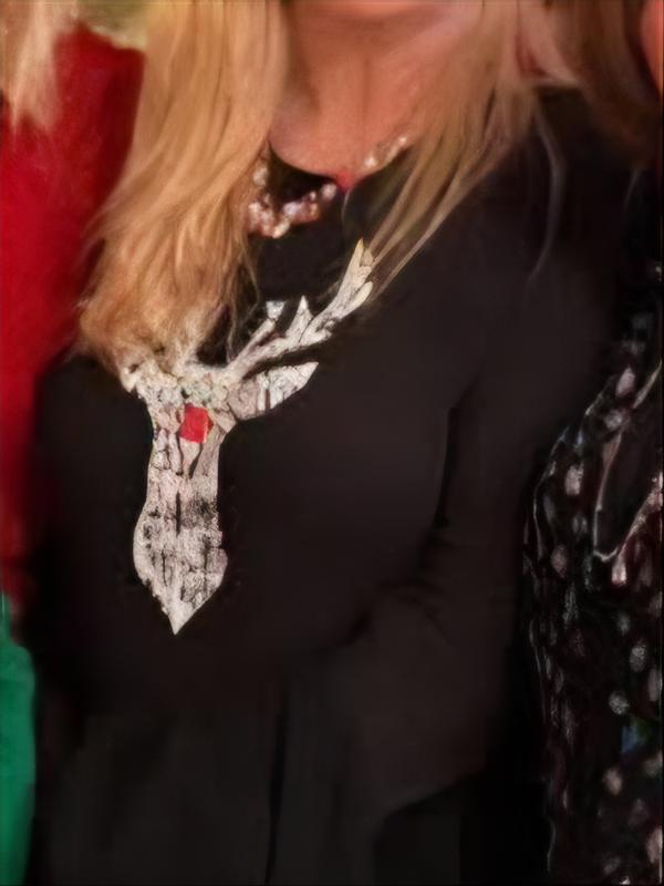Very cute fun holiday shirt...with jeans or elevate with a blazer or cashmere cardigan. I'm 5'4 180 and sized up to XL for a loose fit that can be dried in the dryer. Sleeves are long (roll up, push up), shirt hem covers my bottom.