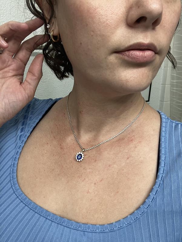 This necklace was gifted to me by my mother because it looked so close to one my grandmother had owned that I really loved. The pendant is beautiful seems very well made and the stones especially the blue is very vibrant. I hate getting a sapphire that is basically black. In addition the backing of the pendant that sits against your skin is very smooth. It’s almost like a basket. The chain it’s on however is terrible. It’s so thin it was not equipped for the weight of the pendant and it constantly got little knots in it. I fell asleep with it on one night and the chain got so tangled in the prongs on the necklace I had to just take nail clippers to the chain to get the pendant off and on another necklace. That is the only reason I took off 1 star.
