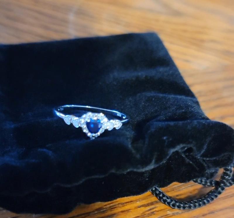 Lab-Grown Blue Sapphire (1/4 ct. t.w.), Lab-Grown White Sapphire (1/8 ct. t.w.), & Diamond Accent Heart Ring in Sterling Silver