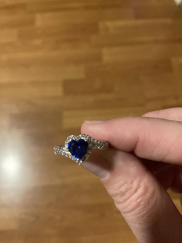 Macy'sLab-Grown Blue Sapphire (1-7/8 ct. t.w.) & Lab-Grown White Sapphire (1-7/8 ct. t.w.) Heart Swirl Ring in Sterling Silver