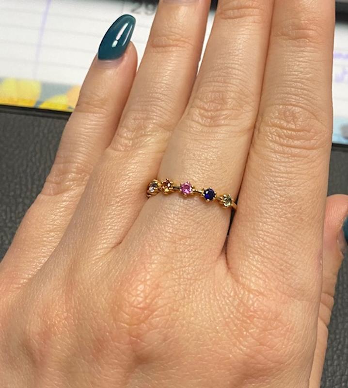 Lab Grown Multicolor Sapphire Thin Ring (5/8 ct. t.w.) in 14k Gold over Sterling Silver