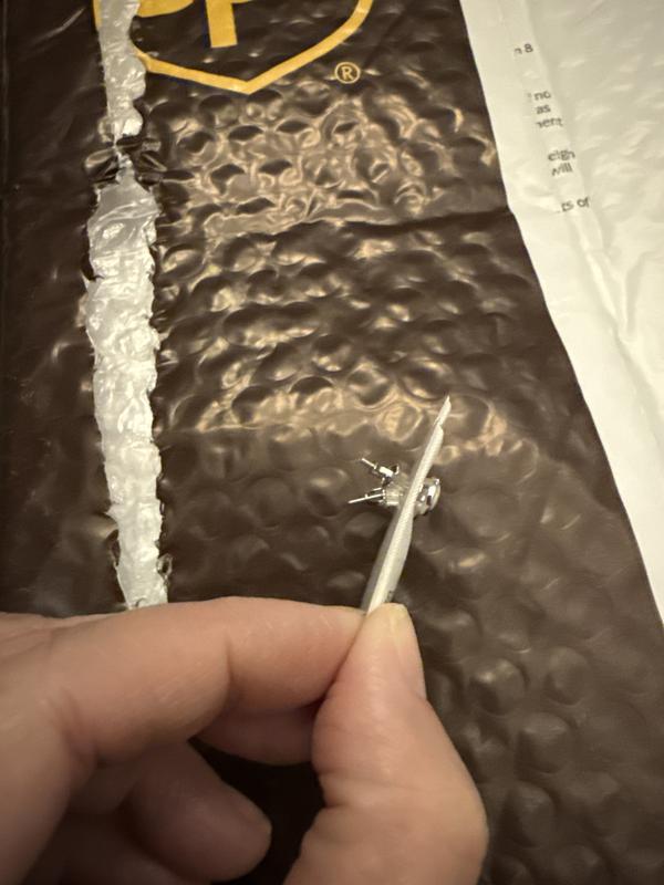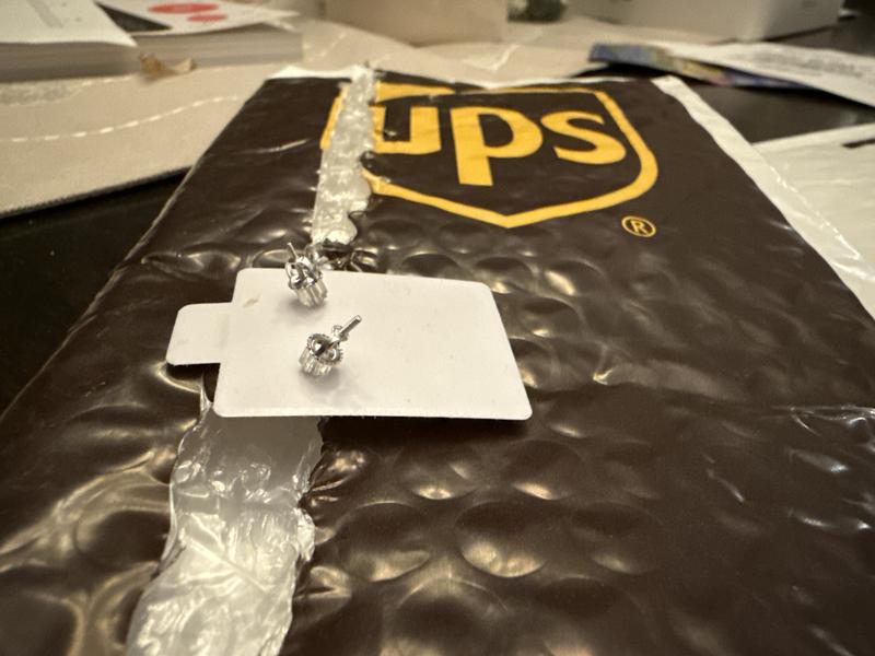 These earrings came loose in a large soft bubble ups envelope with no box or protection. The posts were sticking out of the plastic envelope and completely bent having traveled across across the country by ups ground. They are unusable right before Xmas.