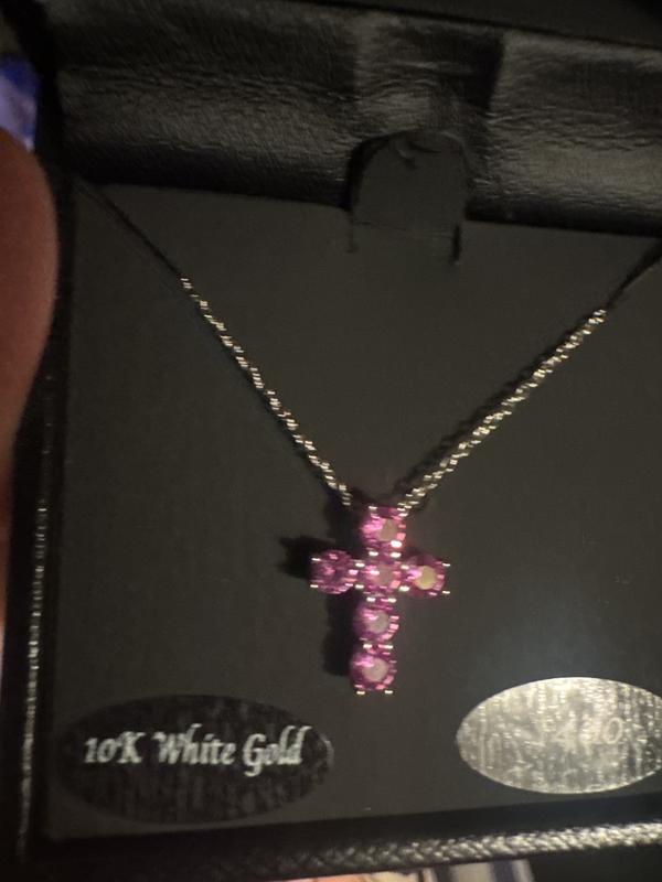 Lab Grown Sapphire Cross 18" Pendant Necklace (3/4 ct. t.w.) in 10k White Gold (Also in Lab Grown Ruby, Lab Grown Pink Sapphire, & Lab Grown Opal)