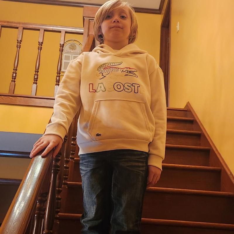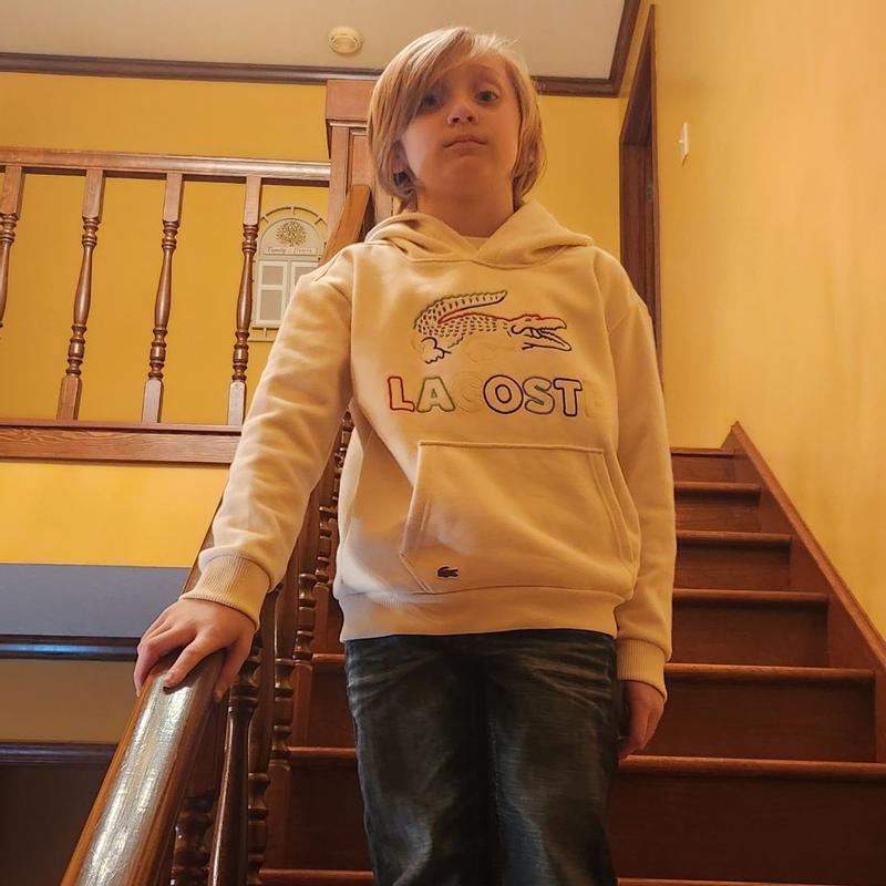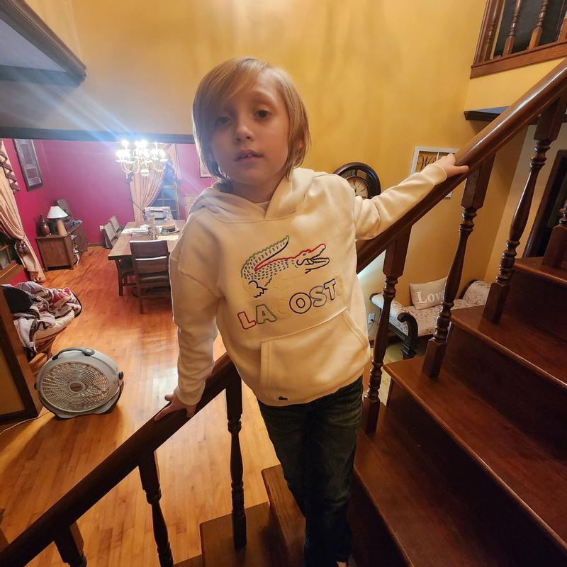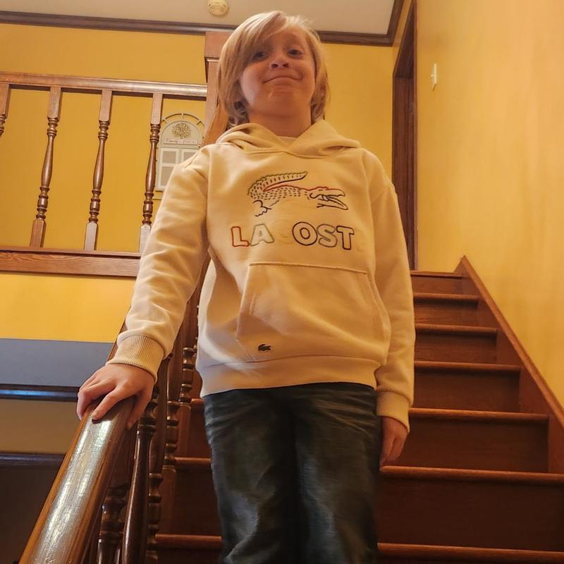 This Kids Lacoste Graphic Core Hoodie is top quality! The embroidery of the logo is very well done and even after two wash cycles it still looks great. It’s stylish and very cozy according to my child and fits perfectly as it’s true to size.