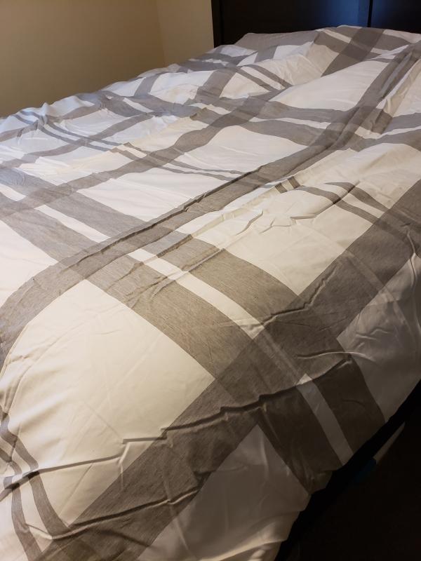 I previously had a comforter that I had been using for the last 3 years, and finally decided to upgrade to this set. Wow. What a waste of time the last 3 years was because this comforter is amazing! It's the perfect weight to keep me warm but not sweating, and I love the design. The reversible print and solid gray is so perfect for changing up my room with no effort. I highly recommend not putting it off and just going for it, you won't regret it!