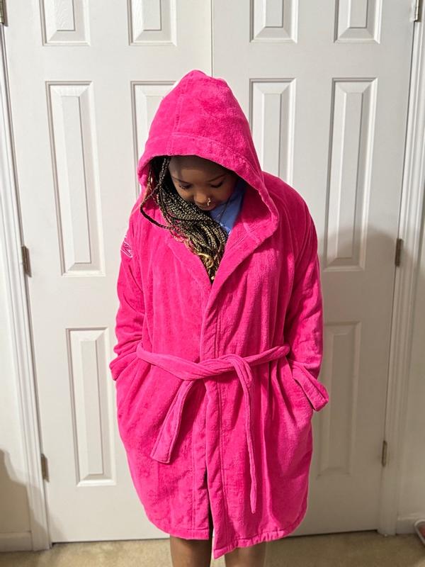 Love the velour robe. It’s soft and fluffy and bright pink is great.