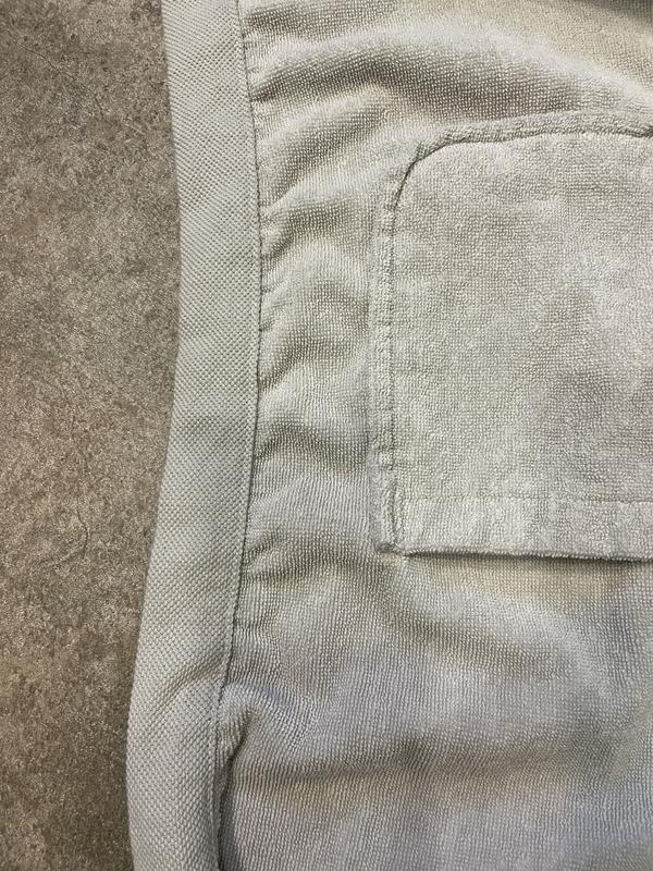 Beautiful out of the package but looks like an old rag after first wash. The placket and edging were so wrinkled after one cold water wash with fabric softener, that it was a foot shorter. The terrycloth fabric shrank at the sewn edges and could not be ironed flat! Even fresh warm but still a bit damp from the dryer it looked like I had left it in the dryer wadded up for a week! Even though it’s just a robe I would be too embarrassed to have my husband wear this! I am returning this. Not the usual quality for this brand. Unless you don’t mind looking homeless. I like a robe to look nice from the dryer!