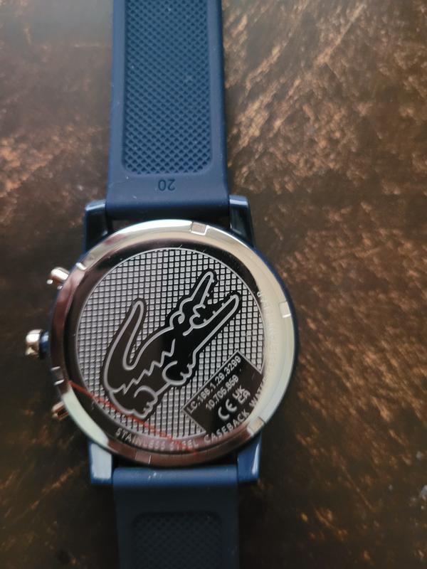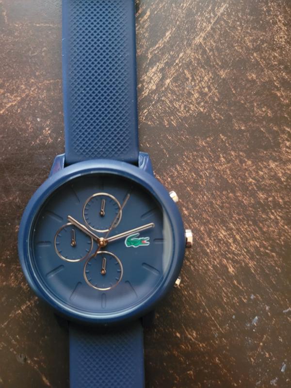 The fit and form of the watch are nice. It sits well on the wrist and isn’t too heavy. The strap is comfortable. But unfortunately, this is where the pros end. The watch is a nice color, but the indented numeral markings on the face are very hard to see, even in direct sunlight. The watch face is made of a single piece of molded plastic and looks cheap. The watch appears to keep time without any problems. But none of the hands line up with the 12 o’clock position. They reach the top a fraction to the left. This means the watch appears to tick just before 12 o’clock. There are no instructions with the watch, and no indication as to what the ‘chronographic’ dials are supposed to indicate. Pushing the top button starts a stopwatch-type function. The top chrono dial indicates milliseconds and the bottom chrono dial indicates seconds. As with the main clock dial, the chrono dial in the 9 o’clock position ticks to indicate a minute, before the bottom chrono dial has finished a full rotation. It is also very hard to reset the three dials back to the 12 o’clock position. Lastly, there is no date indication. This watch has clearly not been designed by a watch maker. If you’re looking for, and expecting, a true chronographic watch, this is not for you. This is a good example of fashion over function. From a distance, it’s very nice, and has a clear Lacoste symbol where the date indicator would be. Probably not the best choice for a watch lover though. Such a shame, I'm usually an avid Lacoste fan, but I'll just stick to their clothing and home goods from now on