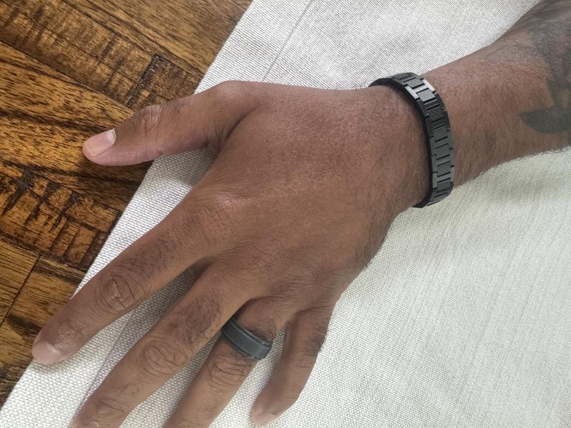 High quality men’s bracelet. Fit perfectly right out of the box for an average sized wrist. If you have a bigger than average wrist, it may be too small. Very comfortable. Looks nice with a suit but can also be worn with casual attire for a more polished look. Definitely recommend!