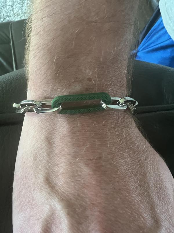My son loves his new bracelet. It’s a solid chain with a good weight and an invisible clasp for a seamless look. I don’t have any fears about it being flimsy or breaking. It’s great quality like all of Lacoste’s jewelry.