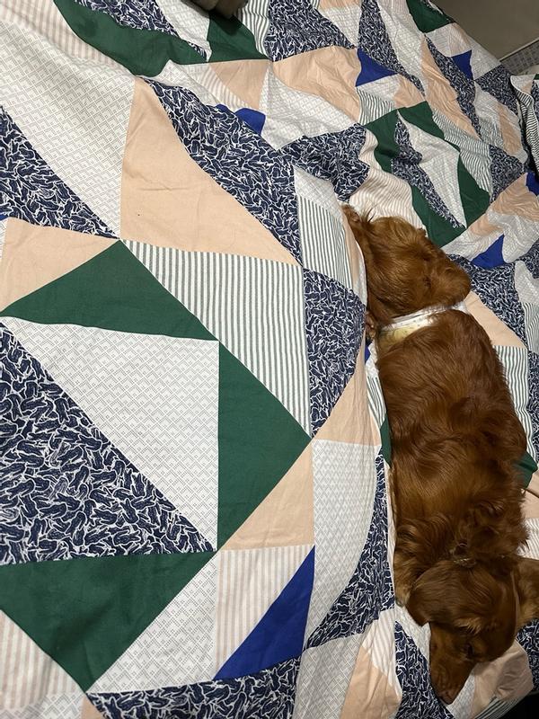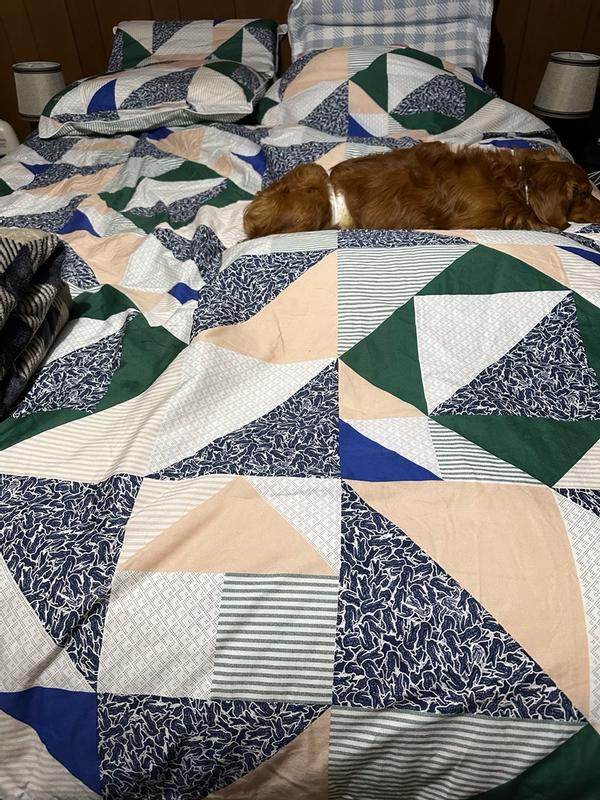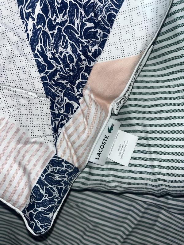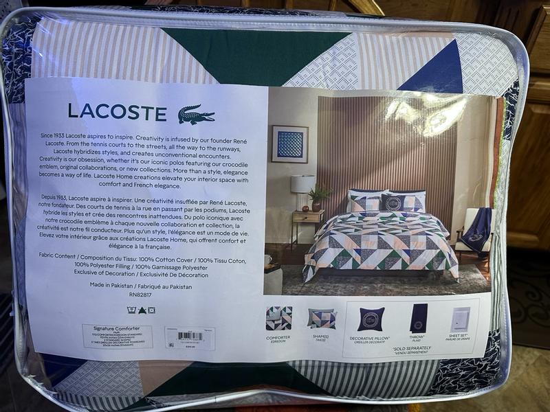 I absolutely love my new Lacoste Signature Comforter Set! The quality is outstanding—soft, durable, and feels luxurious. The design is even more beautiful in person than in the photos, with a vibrant mix of triangles, stripes, and speckled patterns that really brighten up my bedroom. I also appreciate that it’s reversible, giving me the flexibility to switch to classic stripes whenever I want a different look. The iconic Lacoste logo adds a touch of elegance and assures me I’m getting genuine quality. Overall, it’s stylish, comfortable, and the perfect addition to my space, I only wish it had come with the matching sheets, but I will be looking for them.