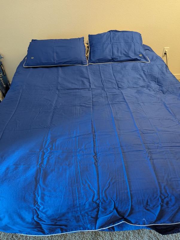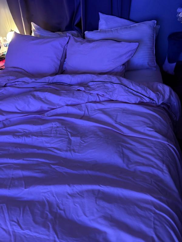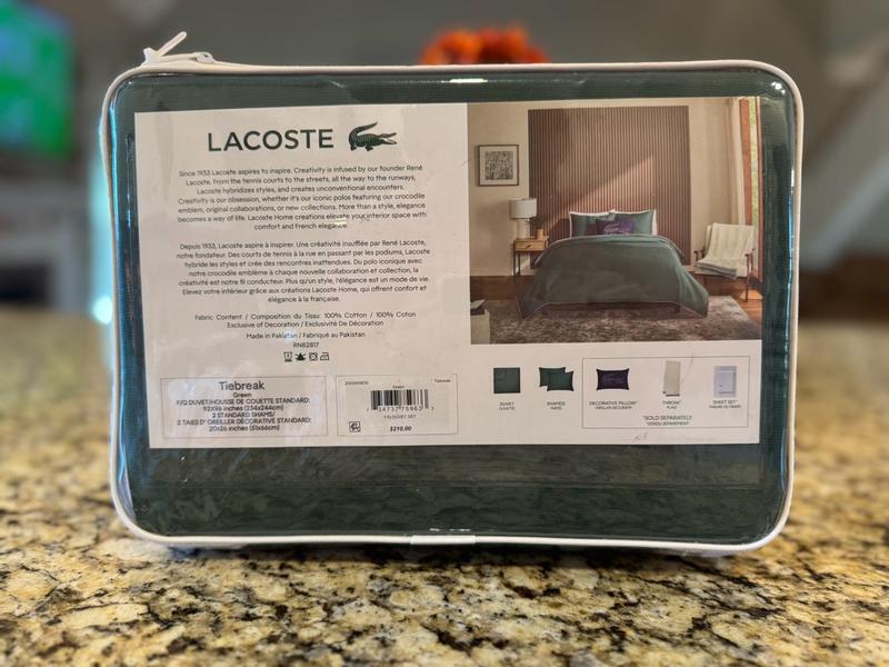 This duvet set exceeded my expectations! I’ve never used a duvet cover before, but now I’m changed forever. It really elevated the look of our room and added a slightly weighted feeling to our comforter which I love. The crispy white of this Lacoste set will go perfect with any color/style.