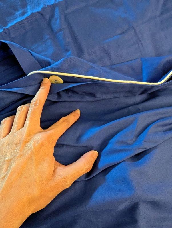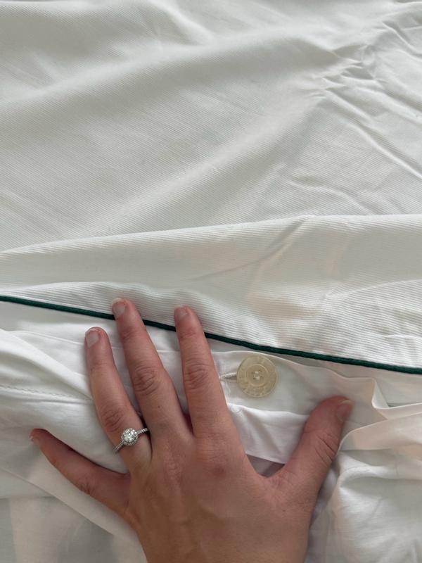 I love how this duvet cover set immediately elevates the look of my bedroom. It feels soft but luxurious at the same time. My favorite details are the logo and the button closure.