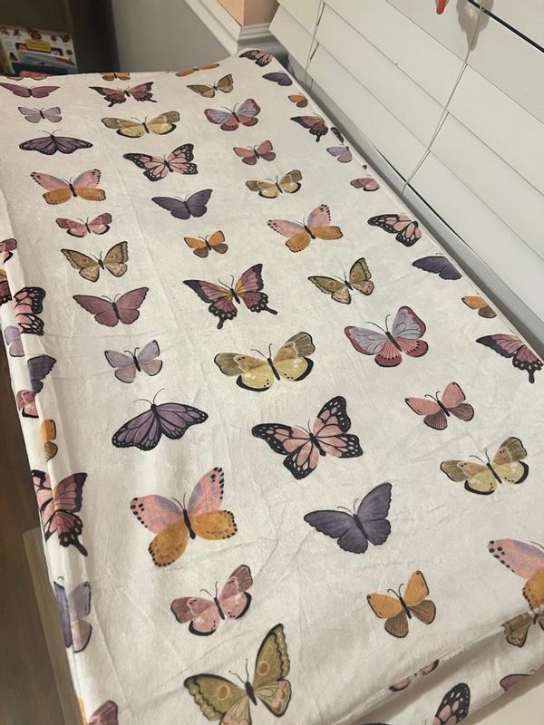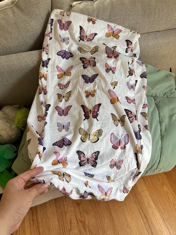 I received this from influenster it fits perfectly on our changing pad. It removes quickly for washing and cleaning. I love the butterfly designs. It's by far one of the softest fabrics I've felt making my baby so comfortable firing change time.