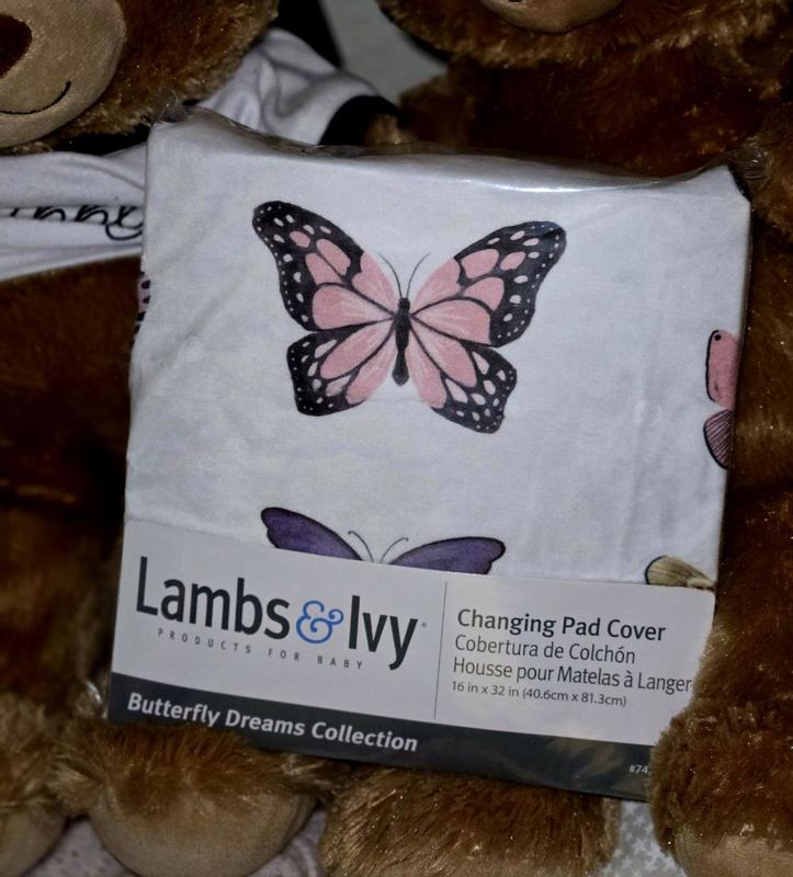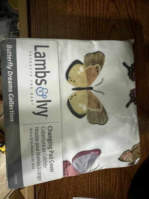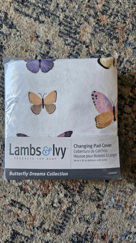The Lambs & Ivy Butterfly Dreams Changing Pad Cover is soft, cute, but was a little too big for my changing pad. The material is a bit thin and slips around once baby is on it. Wish it wasn’t as stretchy. Still cute and soft. Might work for some.