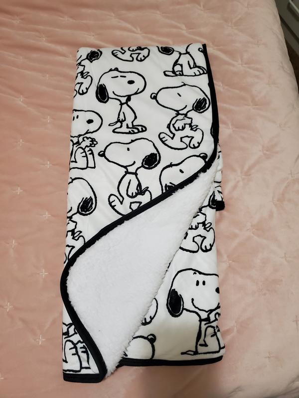 Classic Snoopy Minky and Sherpa Baby Blanket - White/Black