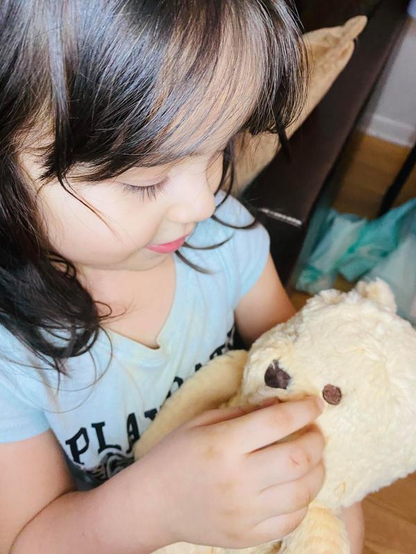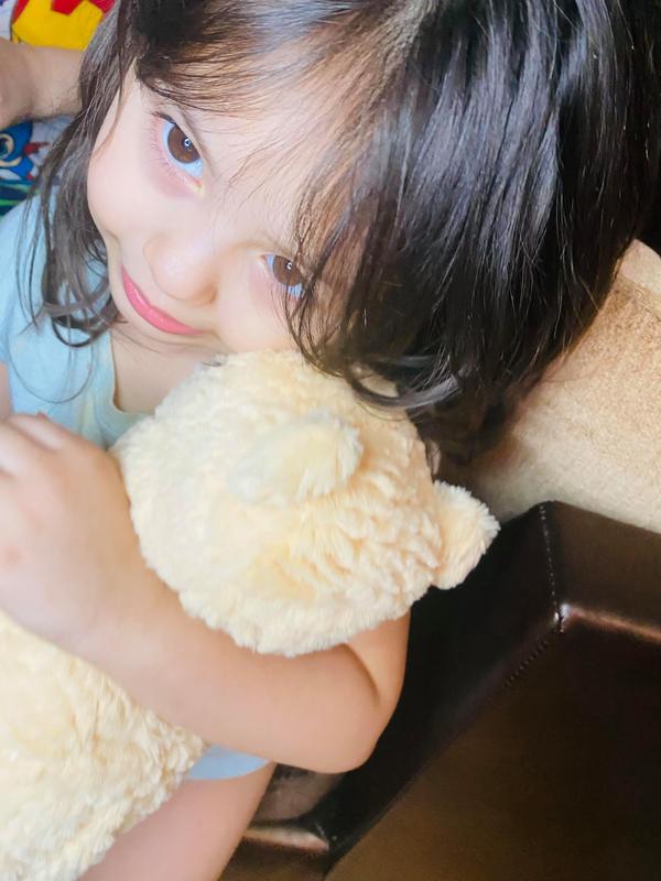 This plush is super cute. It is very soft and the perfect size for my two year old. He loves his "teddy". He carries around the house and gives him hugs. This plus is well made so I know it will hold up to my toddler.