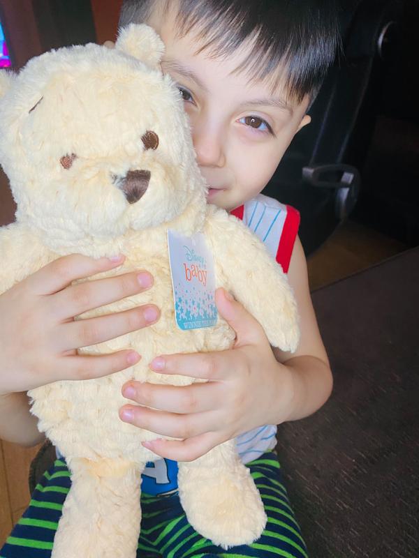 The Storytime Pooh Plush is the perfect first bear. It is super soft and great for the little ones to hold and snuggle with. It seems really durable and is the perfect size. It's not overly small and not super large either. My daughter definitely loves her pooh bear!