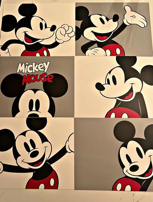 I received this in exchange for my honest review. These are 6 5x10 Mickey Mouse art frames these are really good for a nursery and can be gender neutral they are the perfect size to hang all on one wall or to spread them out I want more of these but of Minnie Mouse as well