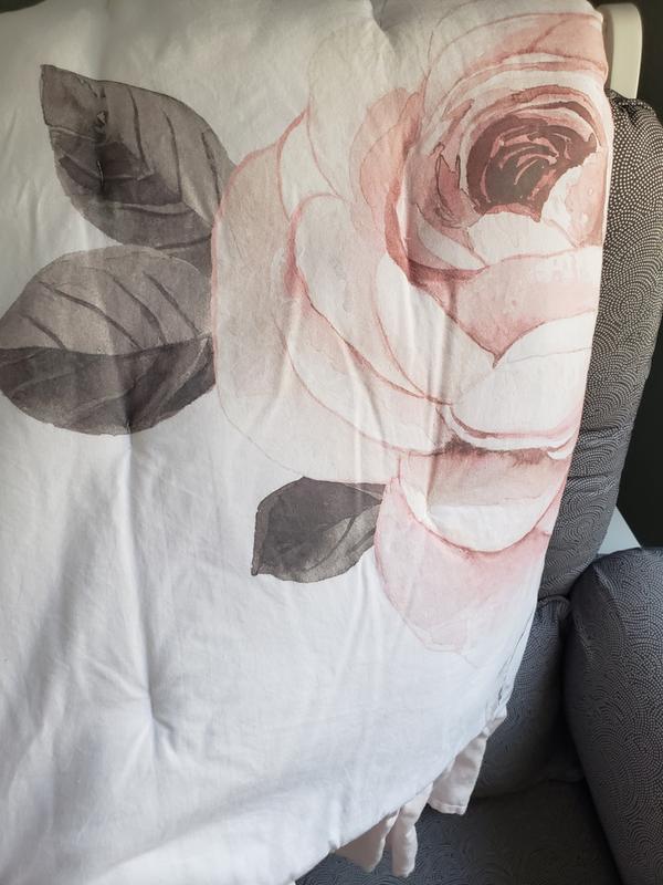 I'm really appreciative to have this adorable baby bedding set to test out. The crib for my kid is made so much nicer by the light pink color and flower decorations. My infant will love the cozy and soft blanket.
