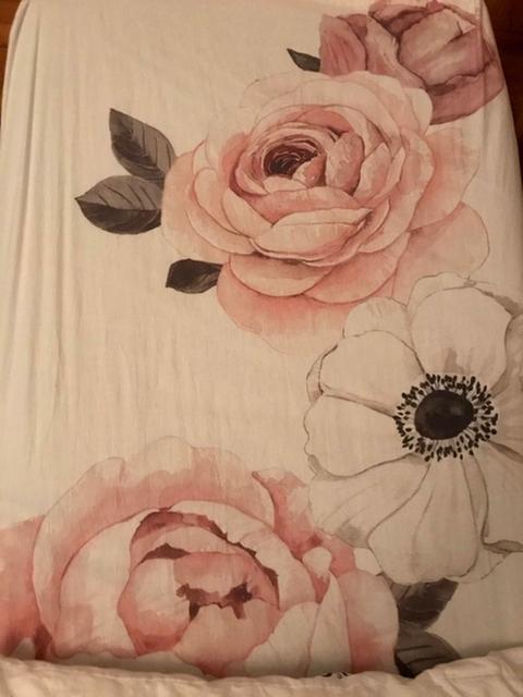 I bought this for my baby girl about 6 weeks ago and the decals have started coming off the wall. We followed instructions to apply and within 2 days they started falling off and landed on the crib. Aside from that everything else was nice and looks decent in the nursery. For what I paid I expected better quality and softer material.