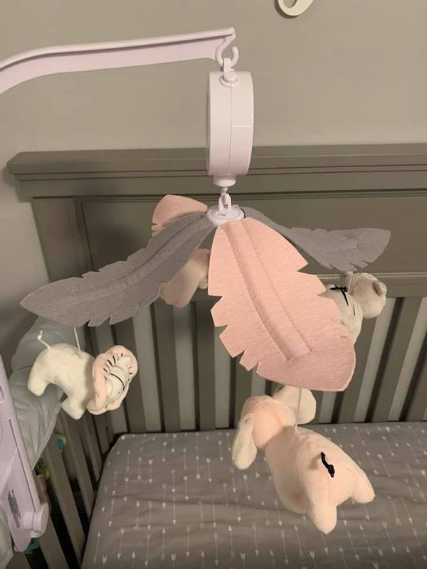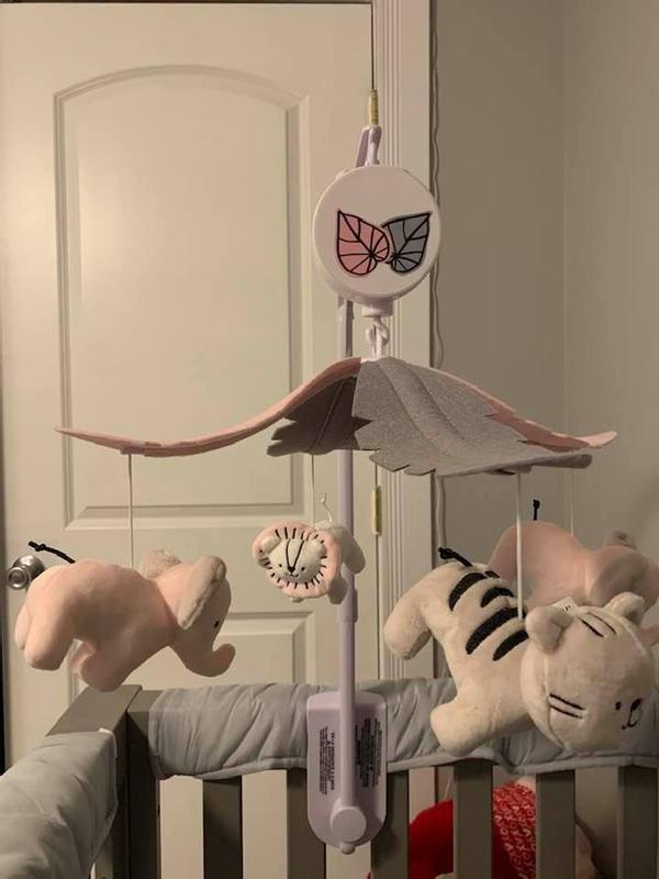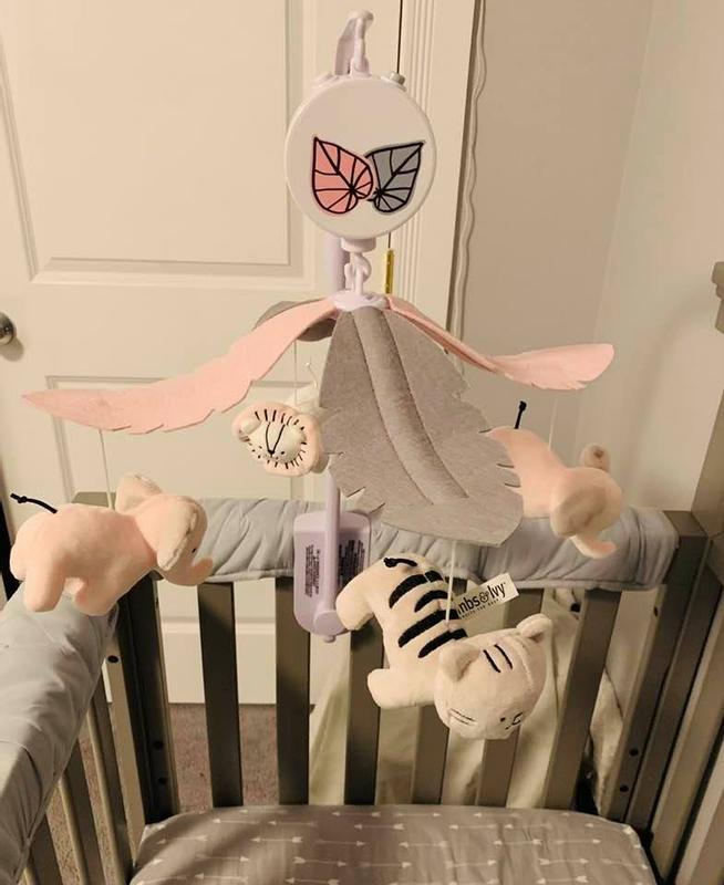 Couldn’t be happier with this high quality well made mobile. I searched and searched for the best one to give my granddaughter. I am so delighted I discovered Lambs and ivy My little one is mesmerized by this mobile and the music is very soothing,