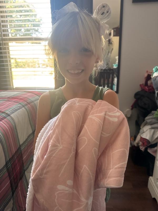 We love this fleece baby blanket from Lambs & Ivy so much! I got the Petals design in a light, soft pink color. I love the whimsical floral designs on this blanket as it’s subtle and not too loud. This blanket is 2-sided and has white shearling-like fleece on the bottom, while the top pink petals design has a softer, mink-like feel to it. It’s a super cozy throw blanket for my little one to tug around. I love this blanket for its comfortability as it’s soft and plush, while still lightweight and airy. The sizing is perfect and my toddler loves hugging it at night to fall asleep. This blanket washes extremely well in the washing machine. I like to air dry the blanket as opposed to using the dryer so that I can keep the fleece side of the blanket soft and cozy instead of it balling up and getting rougher. Overall, a super cute, durable and versatile baby blanket that is lightweight, cozy soft and I highly recommend it!