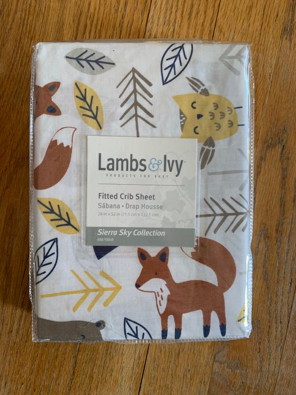 I got the SLambs & Ivy Sierra Sky Cotton Fitted Crib Sheet for my newborn Grandson. I raly like the pattern with the fox, the bear , the nature. The colors are realy vibrant. The sheet is so soft and fits great and snug over the matresse. I wash it in the washer and dry it in the dryer and it comes out like new. Anybody that sees the sheet ask me where i bought it and i recomend the Lambs & Ivy Sietta Sky Brand