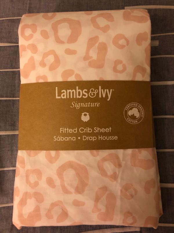 I love the pink leopard print organic cotton fitted crib sheet by Lambs & Ivy. It matches the nursery perfectly! I only purchase certified organic cotton and was very happy when I came across this beautiful fitted sheet. It feels scratchy at first but after I washed it for the first time before putting it on it softened up a little bit. I highly suggest if you want a cute sheet that’s safe at the same time!