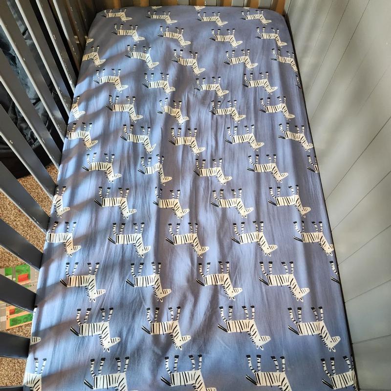 Baby Signature Zebra Blue Organic Cotton Breathable Fitted Crib Sheet