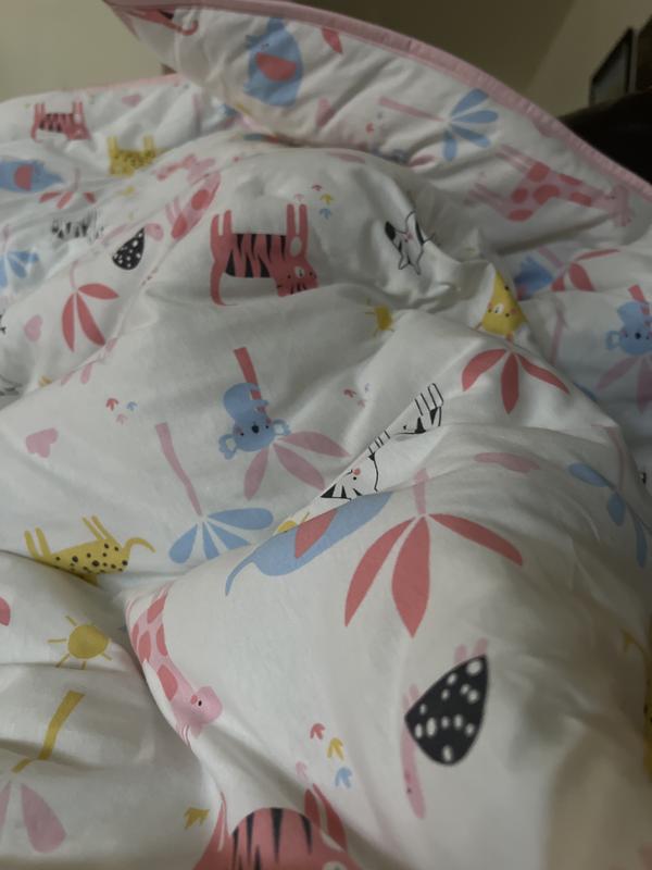 I love this baby crib bedding set. It’s a good quality. I like that it is a soft blanket, it goes perfectly with my daughter room. I would recommend this to family and friends that want a crib set that is jungle themed for a little girl this would be a great pick. What’s good also is you can still use it once your child gets into a toddler bed so it will last us a while.