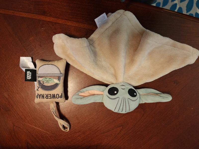 This Star Wars Cozy Friends Grogu Lovey and Door Pillow is the cutest thing ever ! It is tiny and the perfect size for the littles ! It's super soft and made with high quality materials! I love that it has the lovie and also comes with the door pillow , my son has the door pillow hanging on his door and it's so cute and fashionable! This is the perfect gift for any star wars lover ! Baby Yoda doesn't disappoint! Highly recommend!