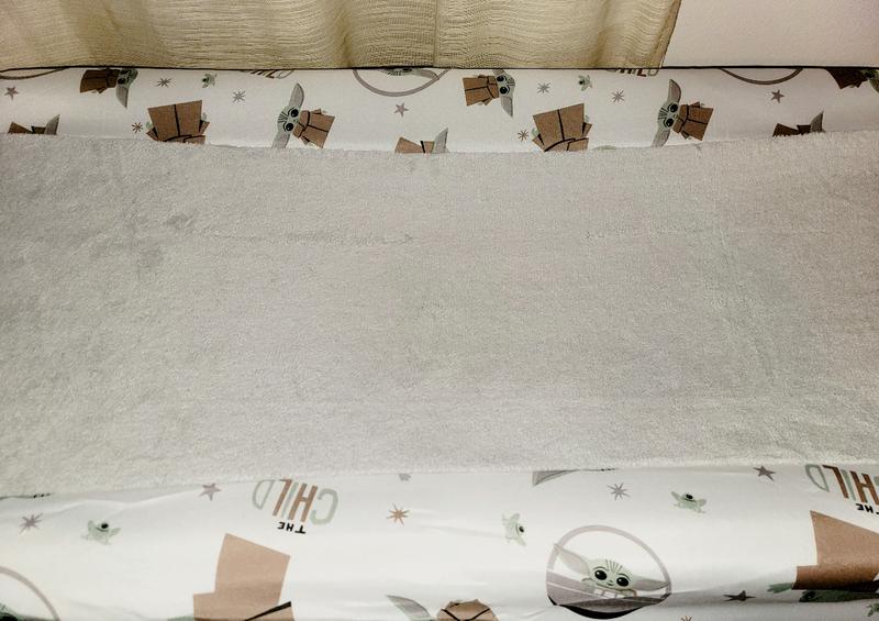 My oldest daughter decided that when my youngest was still cooking Baby Yoda was a good name. This changing pad cover is a cute reminder of the months she spent calling her Baby Yoda while also being extremely functional.