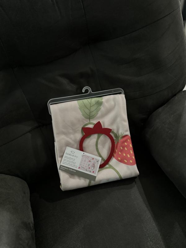 This strawberry blanket is soooo cute. It’s soft and fluffy to cover for baby. I like how you can move it to each month to take a picture of your baby. The blanket is thin so good for spring and fall. gifted by Lambs & Ivy