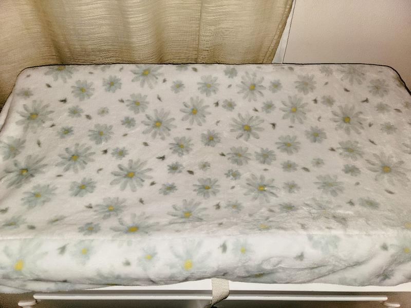 Sweet Daisy Changing Pad Cover is super plush & soft! The daisy design is super cute and looks great in any baby's room. It has elastic to help hold it on to the foam pad, also makes it easy to remove for washing. It was easily washed with your every day laundry and held up nicely after washing.